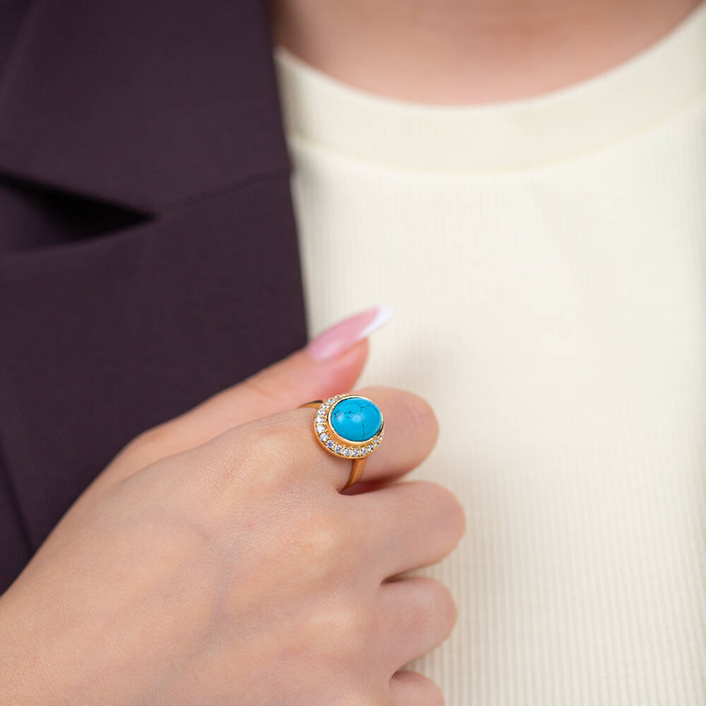 Doğal Yeşil Akik Taşlı Altın Yüzük
