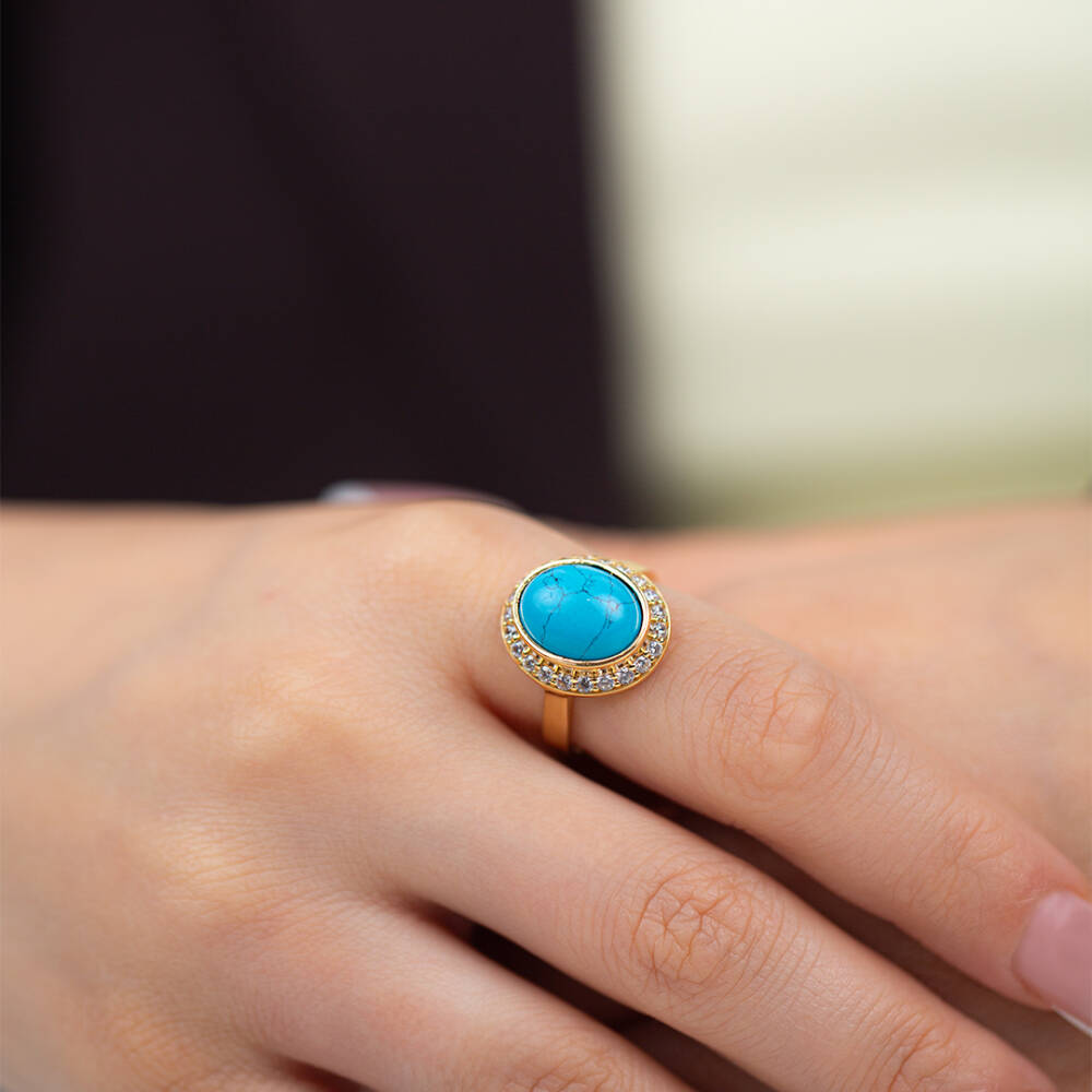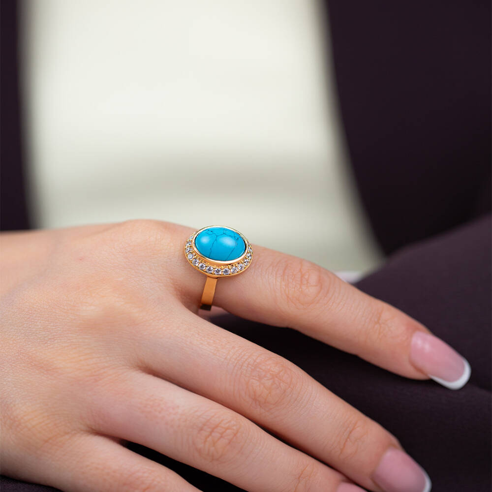 Yeşil Akik Doğal Taşlı Altın Yüzük
