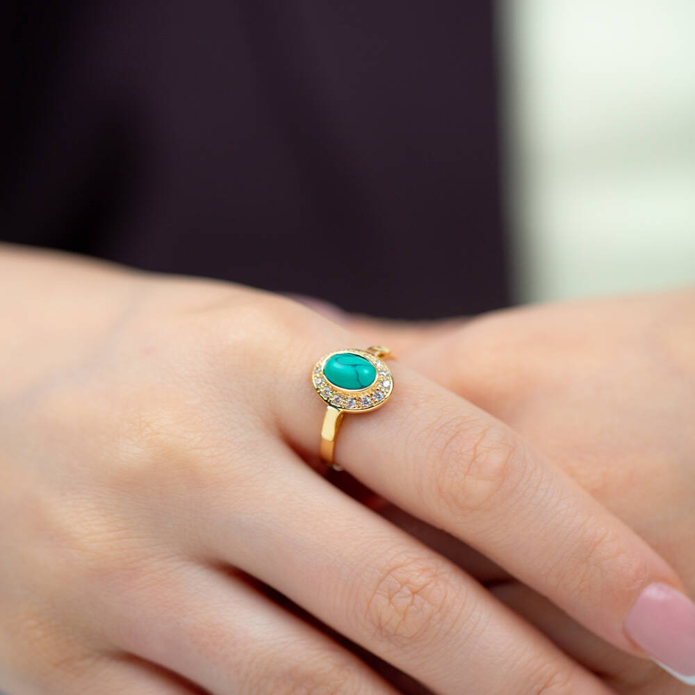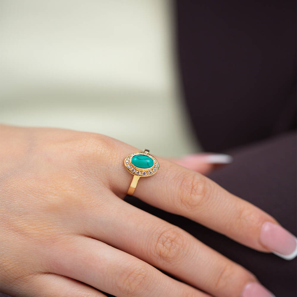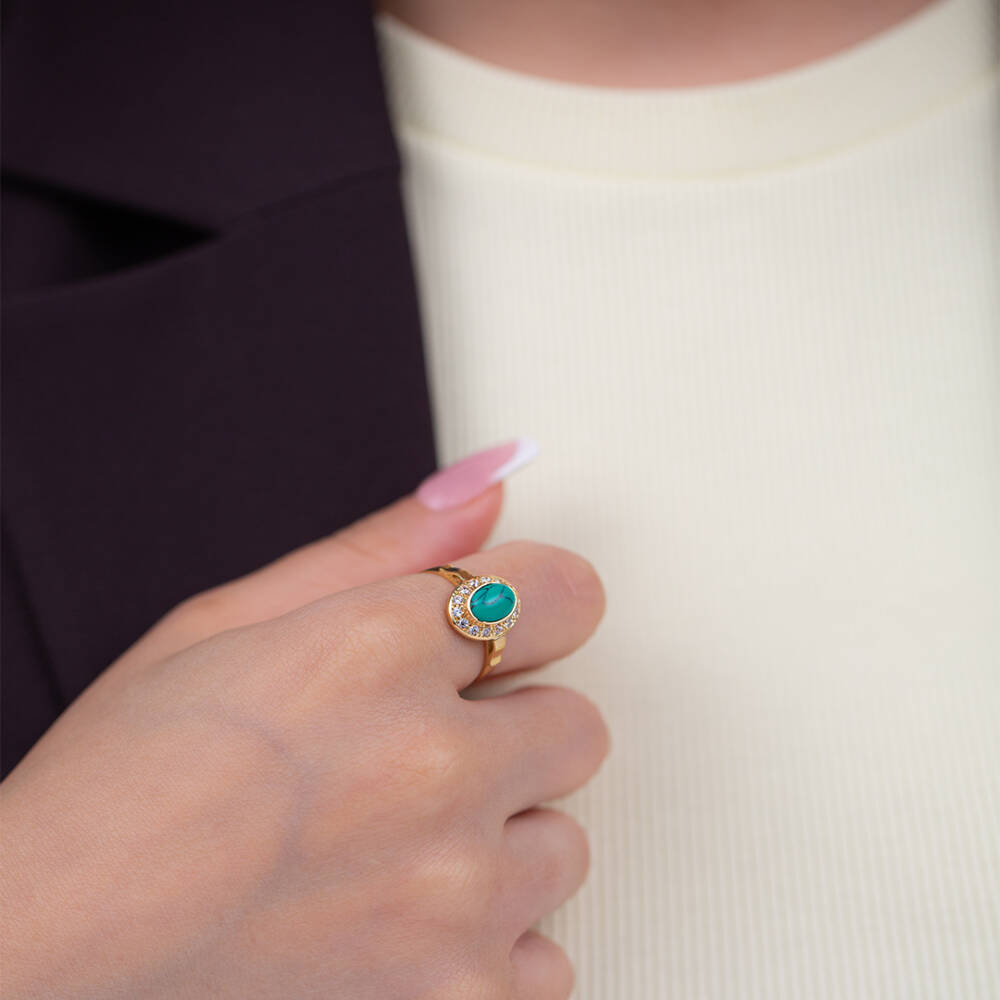 Doğal Yeşil Akik Taşlı Altın Yüzük