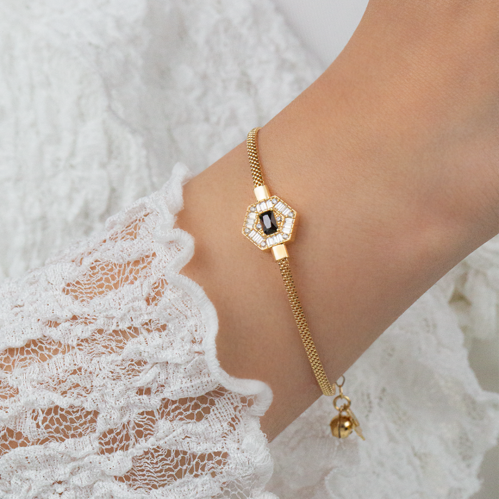 Siyah Taşlı İtalyan Bileklik