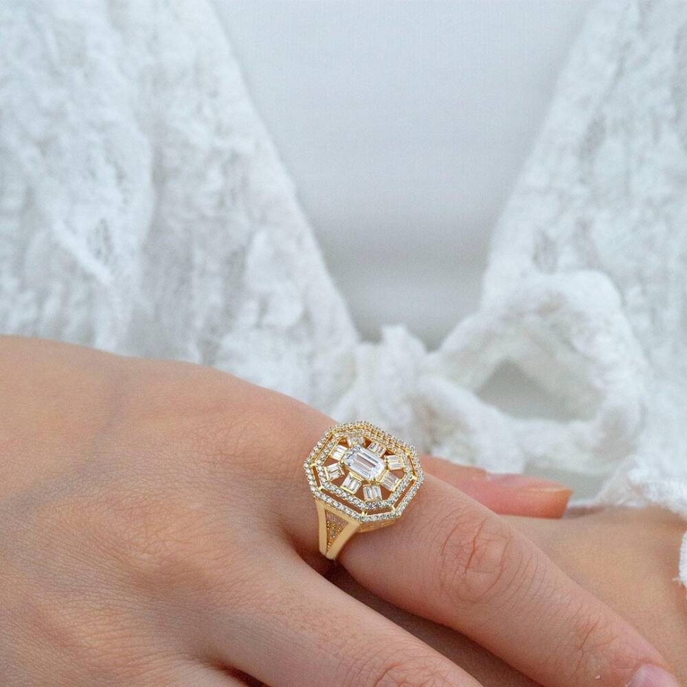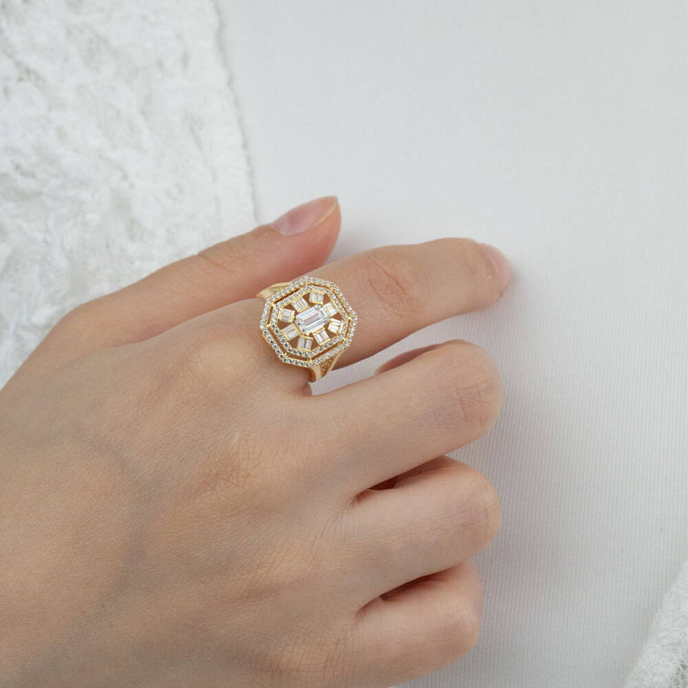 Beşgen Baget Taşlı Yüzük