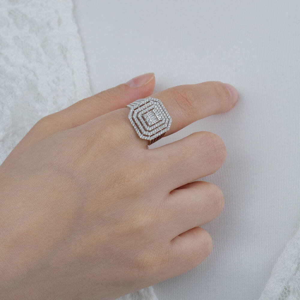 Kare Baget Taşlı Yüzük