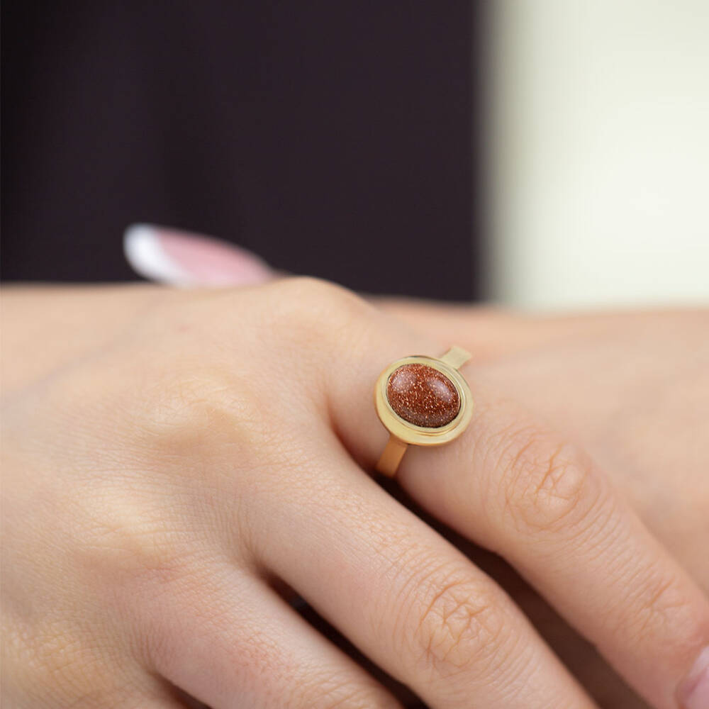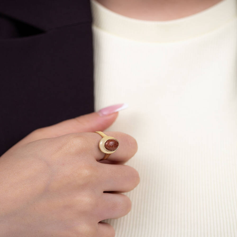 Yeşil Akik Doğal Taşlı Altın Yüzük