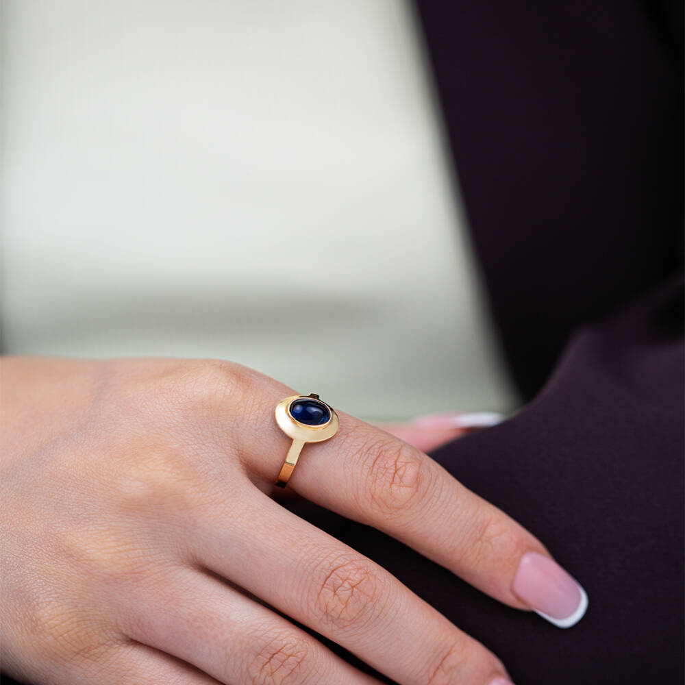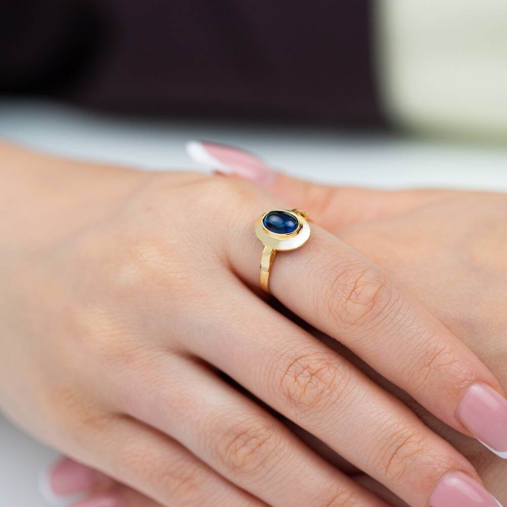 Doğal Yeşil Akik Taşlı Altın Yüzük