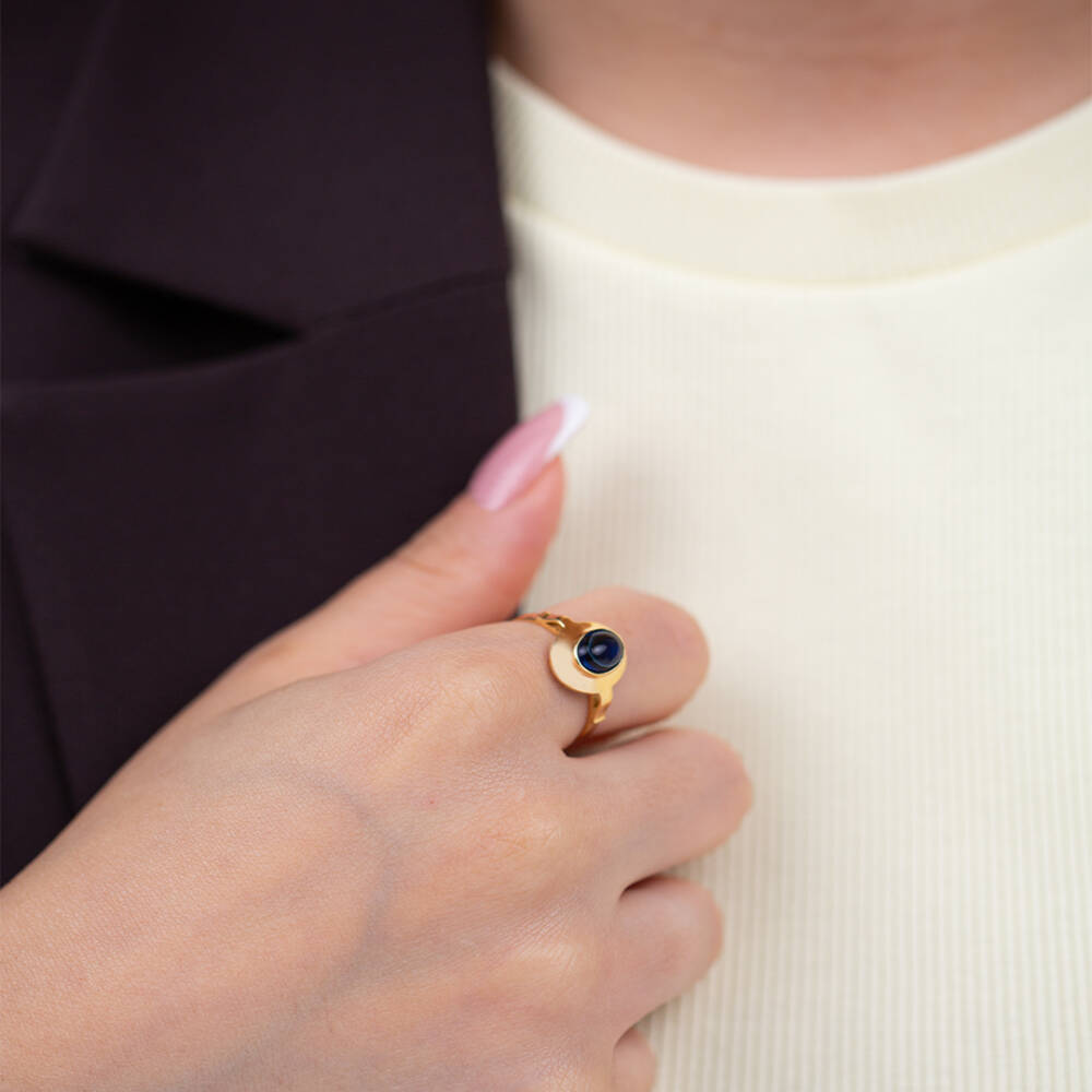 Yeşil Akik Doğal Taşlı Altın Yüzük