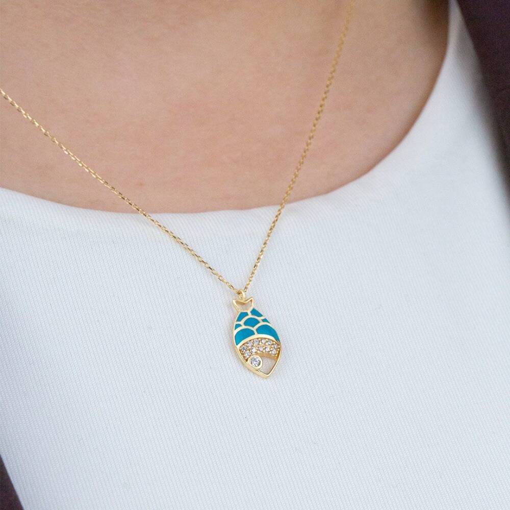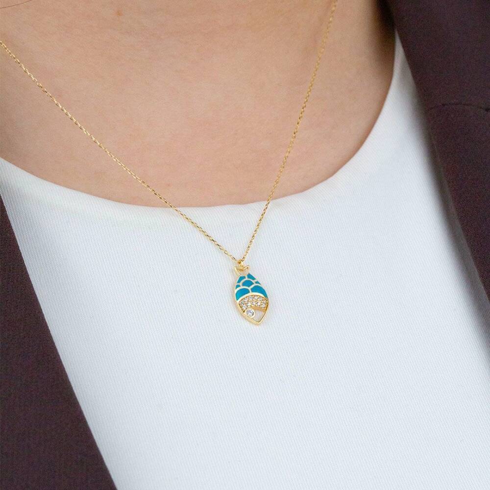 Mavi Taşlı Balık Kolye