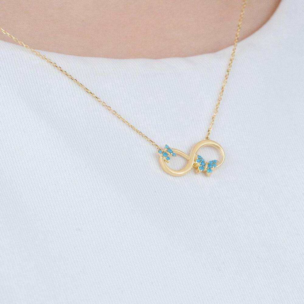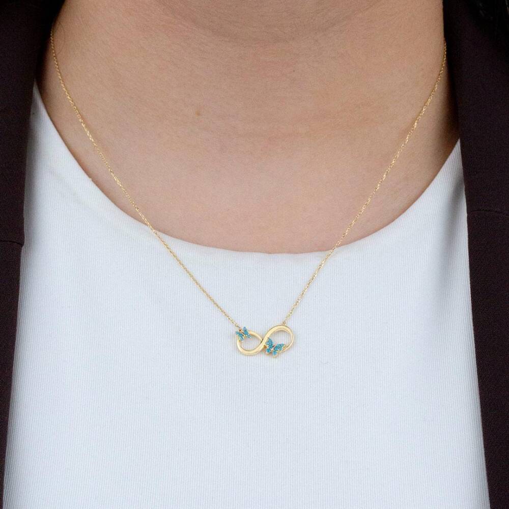 Mavi Taşlı Kelebekli Sonsuzluk Kolye