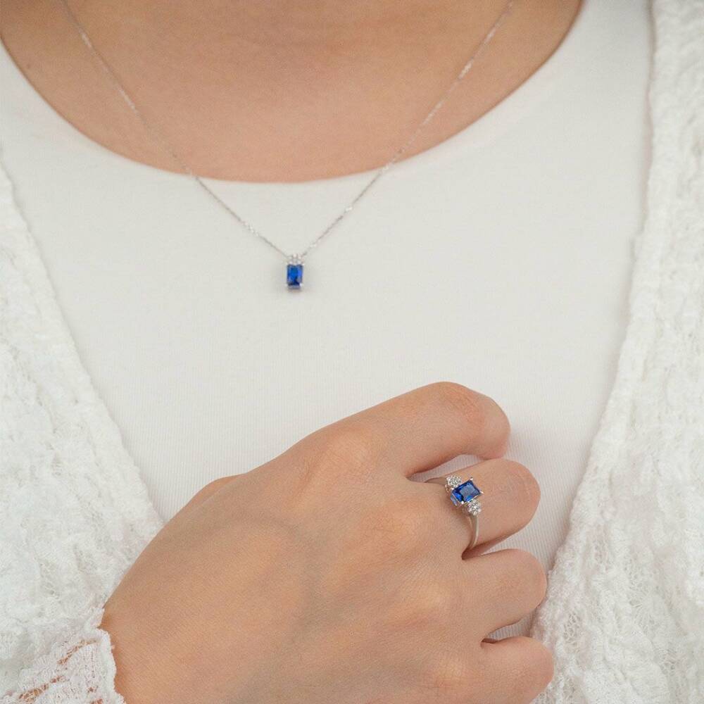 Mavi Taşlı Set