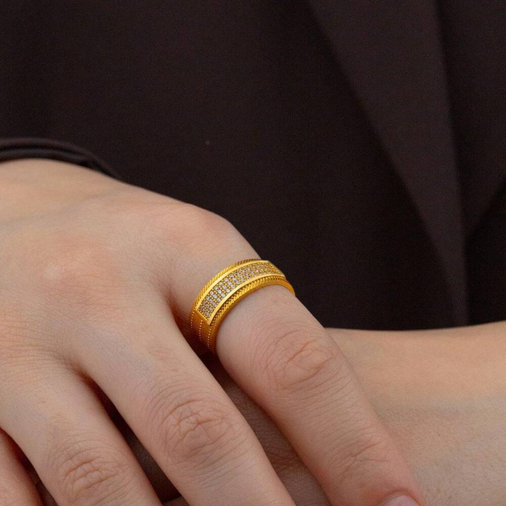 Hasır Desenli Taşlı Yüzük