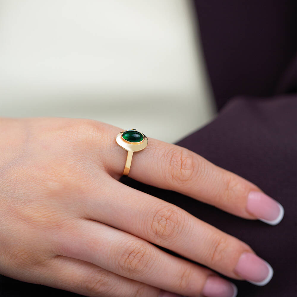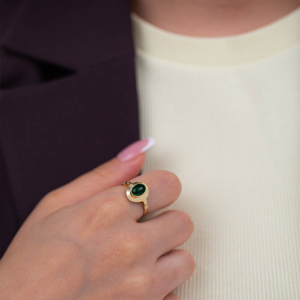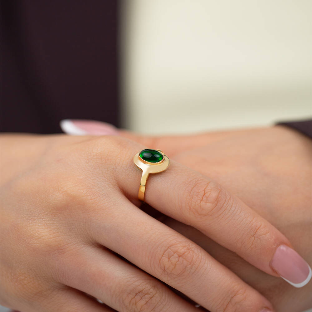 Doğal Yeşil Akik Taşlı Altın Yüzük